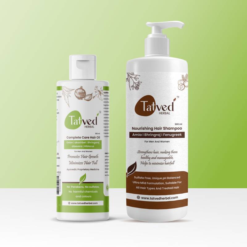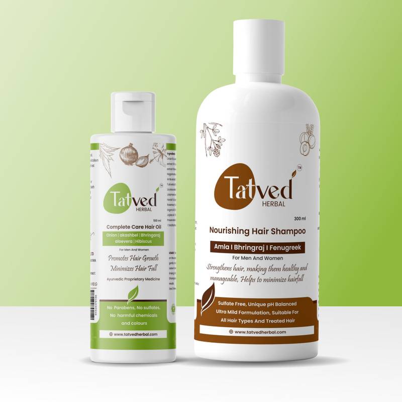 This is a basic hair care combo of Tatved Herbal. Complete Care hair oil will nourish your scalp and hair, and the sulfate-free shampoo promises to give soft, shiny, and healthy hair.