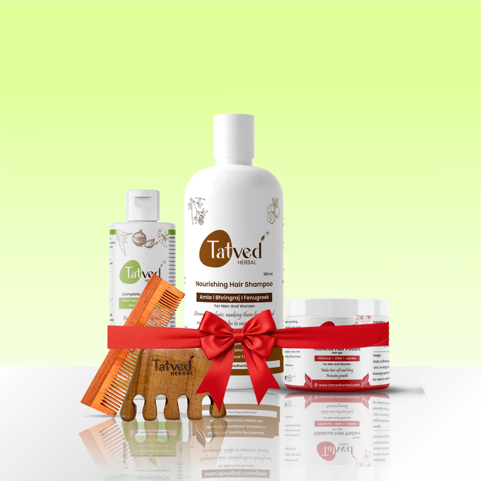 Combo contains: 1.Complete Care Hair oil 200ml 2.Nourishing Hair shampoo 300ml 3.Hibiscus Hair potion 100gm 4. Scalp Massager 5. Neem wooden Combo